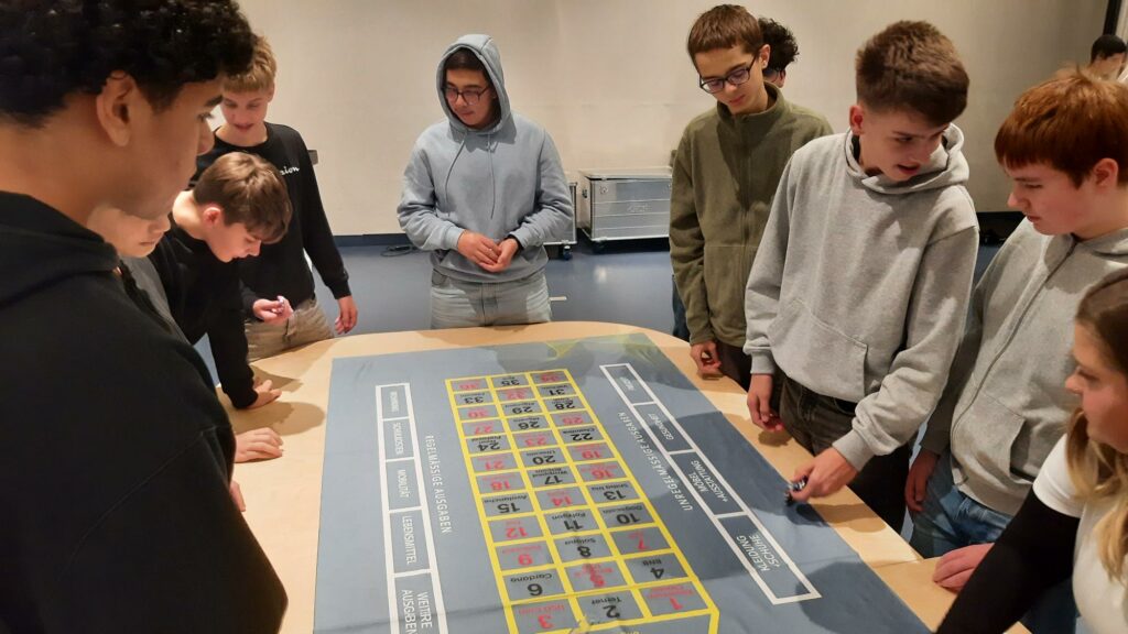 Die SchülerInnen der 1BDV erlebten spannende Wirtschaftssimulationen und erkannten die Wichtigkeit eines bewussten Umgangs mit deren finanziellen Ressourcen. Zudem wurden die Grundzüge der Finanzwirtschaft sowie die Zusammenhänge zwischen dem persönlichen Lebensumfeld der SchülerInnen und der Finanzwelt im Rahmen des Workshops erlebt.