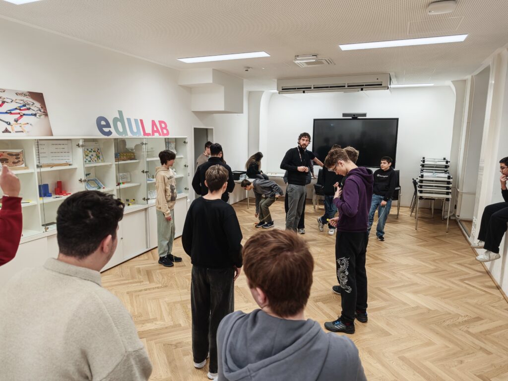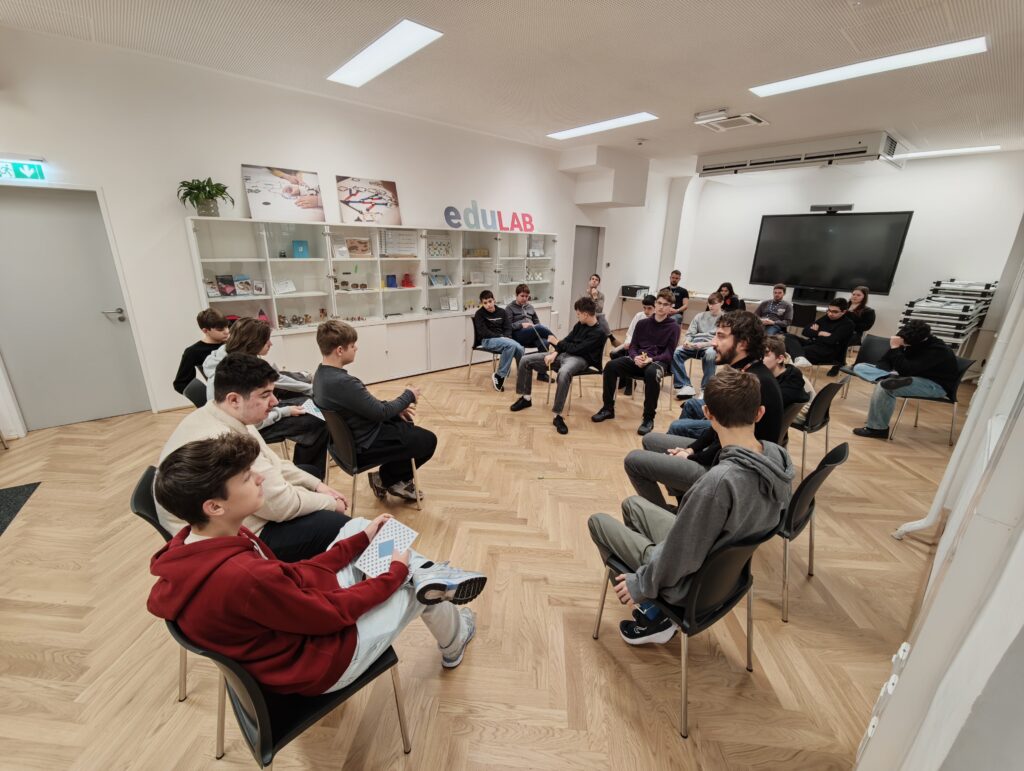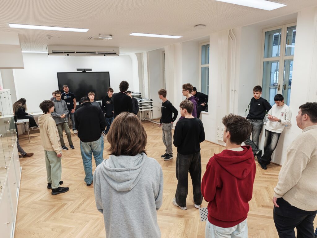Am 25.11.2025 besuchte die IT‑Schule – Klasse 1BDV gemeinsam mit Prof. Ramskogler und Prof. Hackl das eduLAB der TU Wien. Dort nahmen sie am Workshop „KI – Neuronale Netze“ teil, bei dem die Grundlagen einer der derzeit wichtigsten Methoden der künstlichen Intelligenz vermittelt werden. Anstatt an Computern zu sitzen, schlüpften die Jugendlichen selbst in die Rolle von Neuronen, die zusammen ein einfaches Spiel „erlernten“ – ganz analog und ohne Bildschirm. Ziel des Workshops ist es, einen Blick hinter die Kulissen dieser Technik zu werfen und ihre grundlegende Funktionsweise zu verstehen, um das Thema „KI“ zu entmystifizieren.