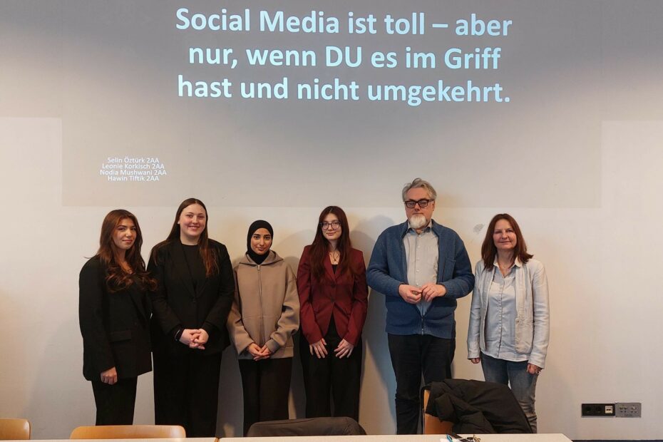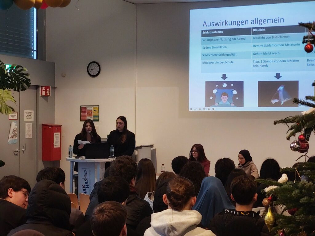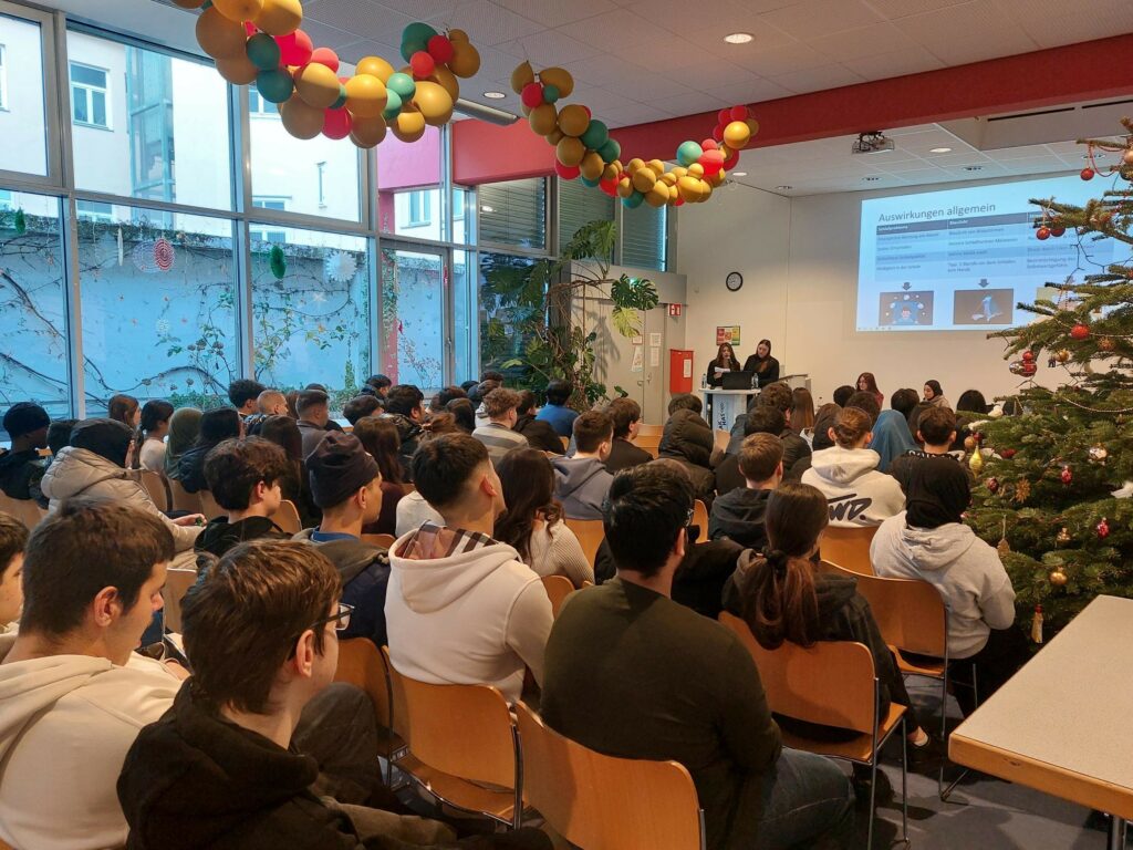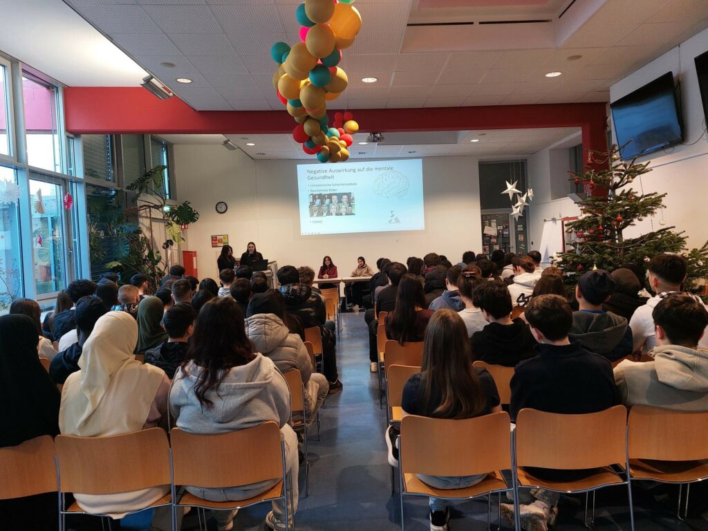 Wir, vier Schülerinnen aus der 2AA, haben am Donnerstag, den 08.01.2026 einen Vortrag vor den 1. HAK & HAS-Klassen im Forum gehalten, indem wir über das Thema Social Media & mentale Gesundheit informiert haben. Wir haben sowohl die Auswirkungen auf die Gesundheit als auch die möglichen Chancen von sozialen Netzwerken präsentiert.