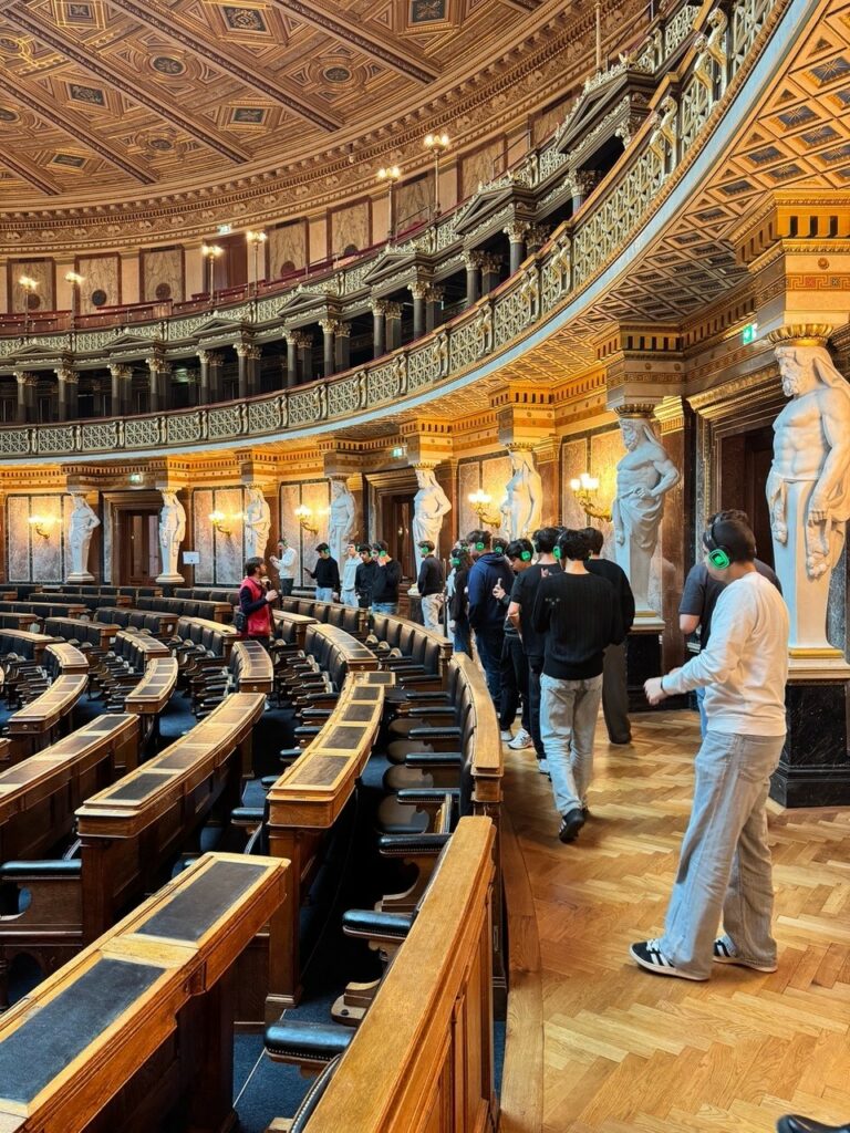 Am 20. Jänner 2026 besuchte die 2BK gemeinsam mit Prof. Babatov und Prof. Korkmaz das österreichische Parlament. Bei einer Führung durch das Gebäude erhielten die Schüler:innen spannende Einblicke in den Gesetzgebungsprozess sowie in die Arbeit der Abgeordneten. Besonders beeindruckend waren die Säulenhalle, der historische Sitzungssaal und der neue Plenarsaal.