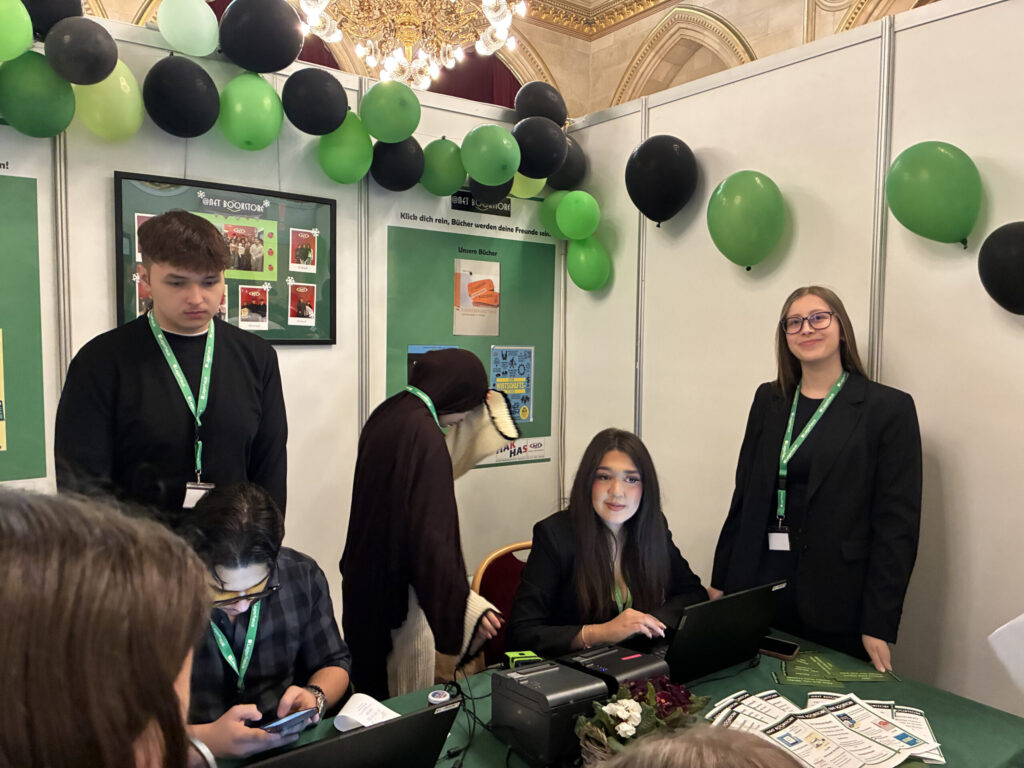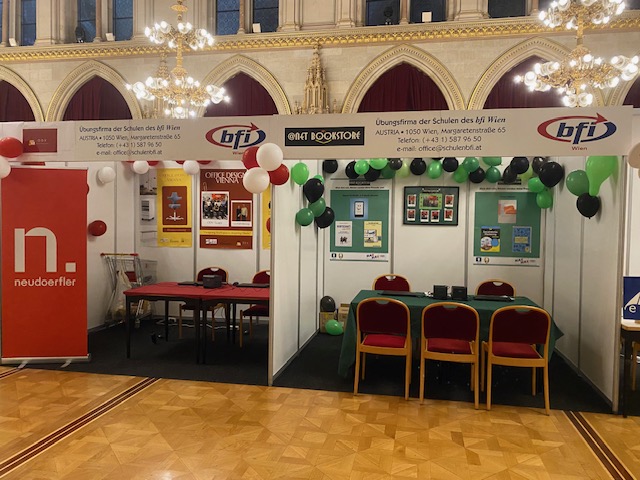 Am 10. März 2026 nahmen die Übungsfirmen @netbookstore GmbH der Klasse 3DS und Office Design Vienna GmbH der Klasse 4BK an der internationalen Übungsfirmenmesse im Wiener Rathaus teil. Insgesamt waren wir 40 Schülerinnen und Schüler, die unsere Übungsfirmen @netbookstore und ODV auf der Messe vertraten.