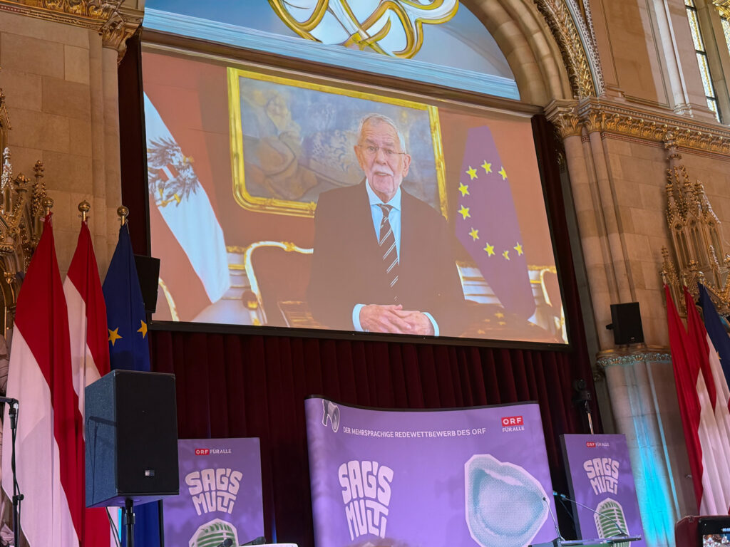 Der Wettbewerb begann pünktlich um 12:00 Uhr mit Begrüßungsworten von Mag. Eva Schindlauer (kaufmännische Direktorin des ORF) sowie Bettina Emmerling (Vizebürgermeisterin der Stadt Wien). Anschließend folgte ein Rückblick auf die Speech-Offs 2026 sowie eine Videobotschaft von Bundespräsident Dr. Alexander Van der Bellen.