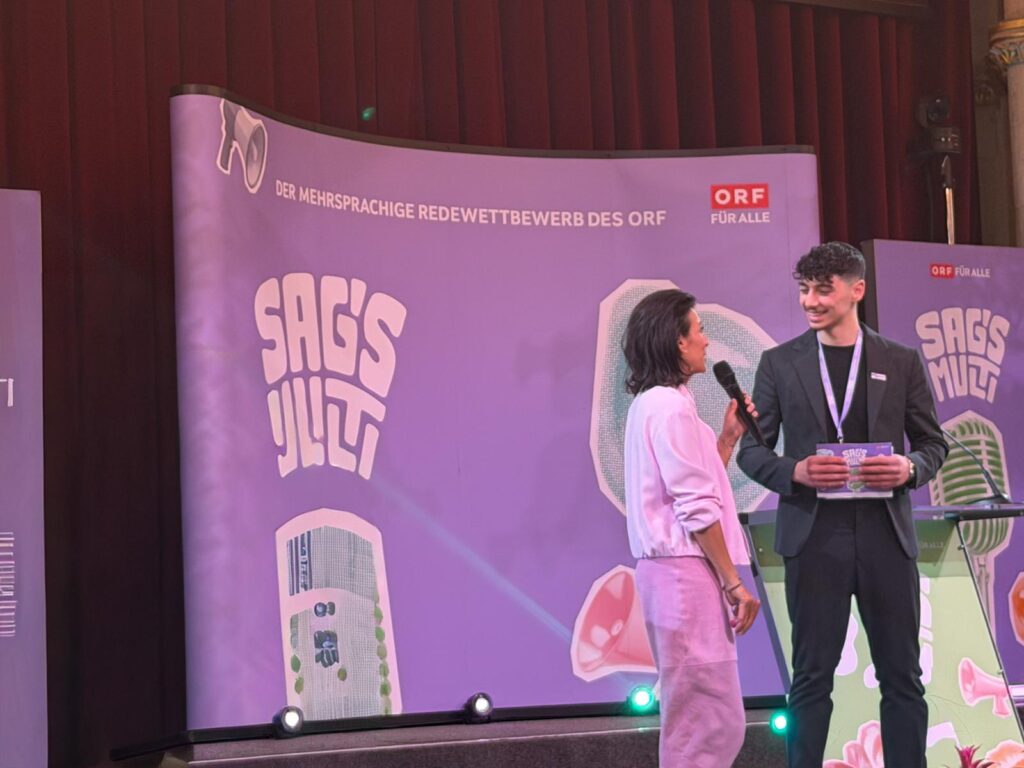 Auch wenn Yazan Fran es diesmal nicht auf das Podest geschafft hat, sind wir sehr stolz auf seine beeindruckende Leistung im Finale. Mit seinem Auftritt hat er unsere Schule hervorragend vertreten und einmal mehr sein sprachliches und rhetorisches Können unter Beweis gestellt. Zwar darf er künftig nicht mehr selbst am Wettbewerb teilnehmen, dennoch bleibt er „Sag’s Multi“-Alumnus und hat damit die Möglichkeit, sich auch in den kommenden Jahren weiterhin aktiv im Rahmen des mehrsprachigen Redewettbewerbs einzubringen.