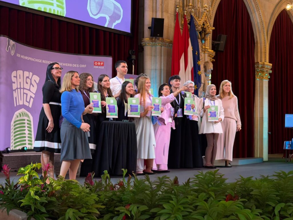 Am 17.04.2026 fand für den Wiener Speech Master Yazan Fran (1CA) das große Finale von „Sag’s Multi-The Final 9+“ im Festsaal des Wiener Rathauses statt. Begleitet wurde er – wie bereits beim Speech-Off des Bundeslandes Wien– von seiner Klasse 1CA sowie von drei Lehrpersonen: Herrn Direktor Mag. Karner, Frau Prof. Christa Kahr und Herrn Prof. Zivorad Zujovic.