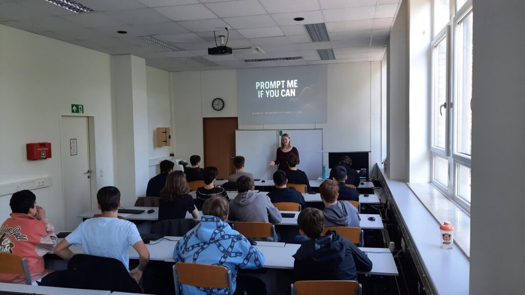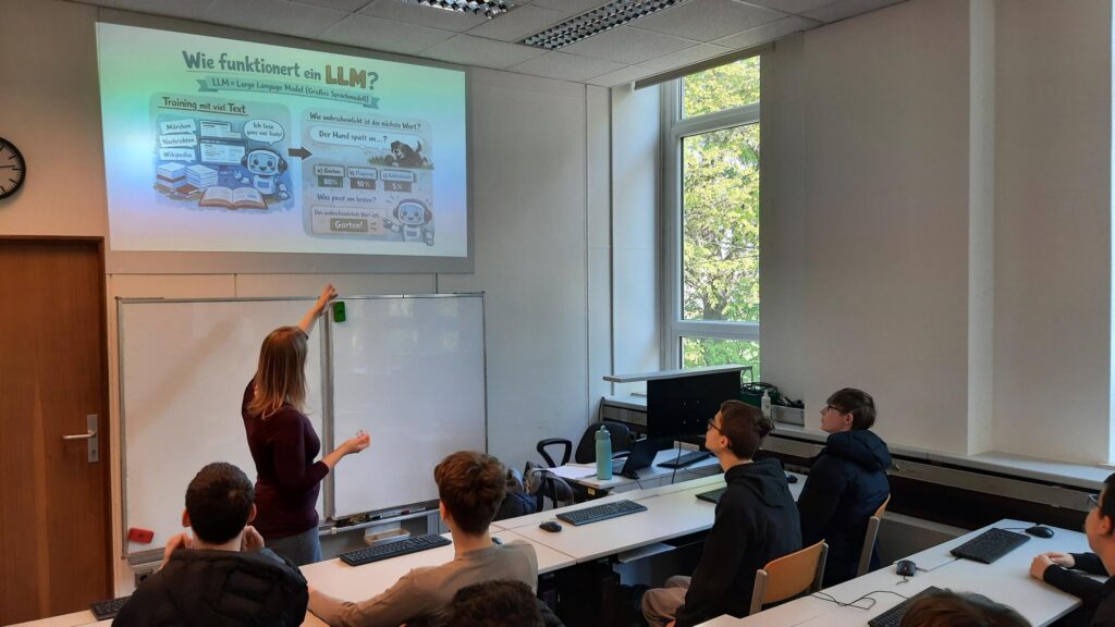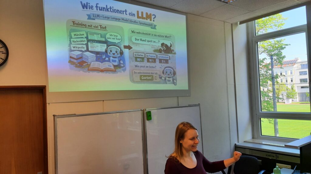 Im Rahmen der Initiative Young Science stellte Florentina Voboril, PhD (Algorithms and Complexity Group, TU Wien) die Funktionsweise von LLMs aus technischer Perspektive vor. In weiterer Folge wurde das richtige Prompten anhand konkreter Praxisbeispiele gemeinsam erarbeitet und geübt.