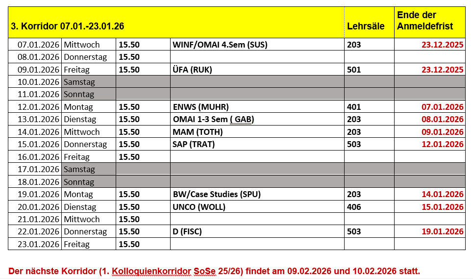 Kolloquien-Termin (3. Korridor) Wintersemester 2025/26